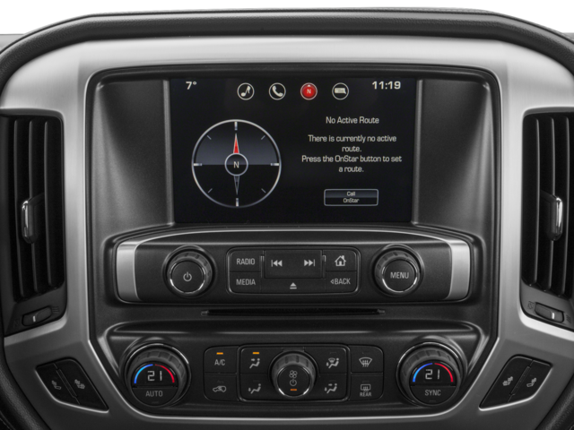 Start this unit from inside with remote start. An off-road package is equipped on this 1/2 ton pickup. The leather seats in this vehicle are a must for buyers looking for comfort, durability, and style. The steering wheel audio controls on this GMC Sierra keep the volume and station within easy reach. The installed navigation system will keep you on the right path. This model keeps you comfortable with Auto Climate. Apple CarPlay: Seamless smartphone integration for this 1/2 ton pickup - stay connected and entertained on the go! See what's behind you with the back up camera on this vehicle. This model features a hands-free Bluetooth® phone system. Greater towing safety becomes standard with the installed trailer brake. This unit has a V8, 5.3L high output engine. This 1/2 ton pickup is outfitted with an OnStar communication system. This GMC Sierra gleams with an elegant silver clear coated finish.