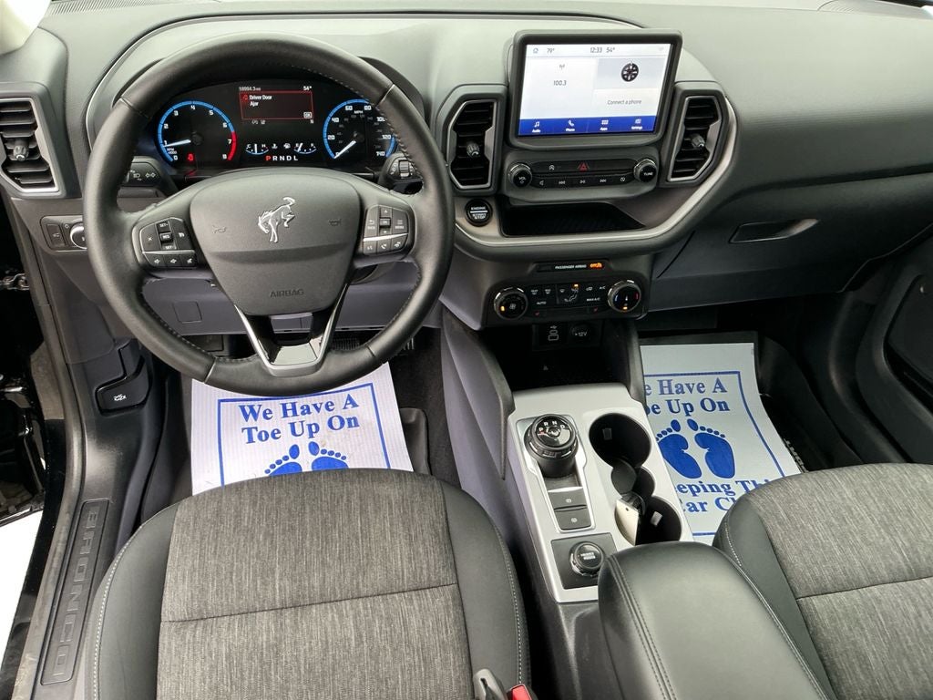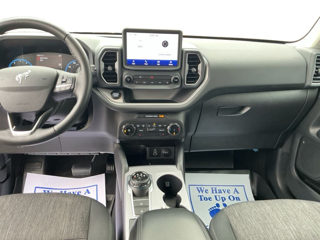 This unit offers Automatic Climate Control for personalized comfort. This 2023 Ford Bronco Sport offers Android Auto for seamless smartphone integration. The rear parking assist technology on this Ford Bronco Sport will put you at ease when reversing. The system alerts you as you get closer to an obstruction. This unit features a hands-free Bluetooth® phone system. Apple CarPlay: Seamless smartphone integration for the Ford Bronco Sport - stay connected and entertained on the go! The vehicle warns of approaching vehicles with Cross-Traffic Alert. See what's behind you with the back up camera on it. It has a 3 Cyl, 1.5L high output engine. Set the temperature exactly where you are most comfortable in this Ford Bronco Sport. The fan speed and temperature will automatically adjust to maintain your preferred zone climate. When you encounter slick or muddy roads, you can engage the four wheel drive on this model and drive with confidence.