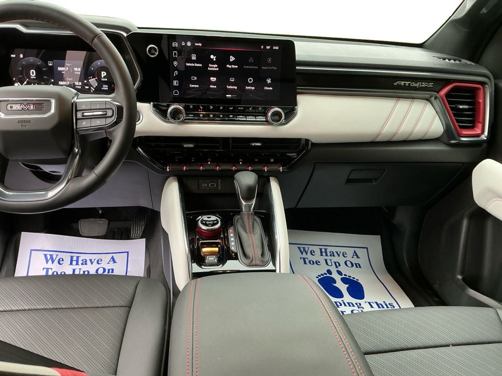 2024 GMC Canyon 4WD AT4X — 0 miles, located in Corinth, MS. This exceptional midsize pickup combines rugged capability with refined comfort, powered by a responsive 2.7L 4-cylinder gasoline engine and advanced 4WD for confident performance on and off pavement. With low mileage and CARFAX 1-Owner history, this GMC Canyon offers like-new condition and peace of mind at the best price in the area. The AT4X trim is engineered for adventurous drivers who demand premium features and durability. Standard tech includes Navigation and Android Auto for seamless connectivity, plus a Back-Up Camera and Lane Keep Assist to enhance safety and convenience on every drive. Inside, expect a functional, driver-focused cabin with supportive seating and thoughtful storage solutions tailored to active lifestyles. Whether you're tackling weekend trails or commuting through town, the GMC Canyon's towing and payload capabilities are backed by a modern chassis and efficient powertrain. This truck presents an outstanding value: factory-new features, minimal usage, and a competitively priced offering that stands out in the Corinth, MS inventory. Schedule a test drive to experience the refined ride, intuitive technology, and robust off-road readiness of this 2024 GMC Canyon 4WD AT4X. With low mileage, a verified single-owner history, and the best price, this is an opportunity to own a premium midsize truck without compromise.