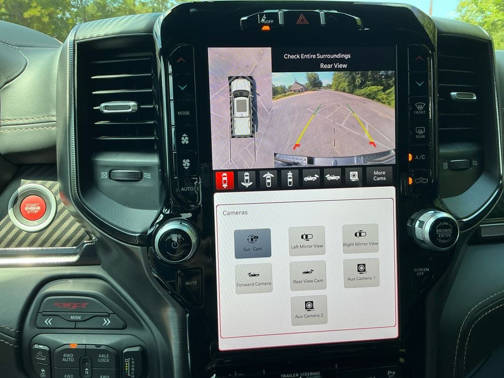 6.2L Supercharged V8 Final Edition: Adaptive Cruise Control with Stop and Go; Leather/carbon Flat-Bottom Steering Wheel; MOPAR 4 Adjustable Cargo Tie-Down Hooks; Trailer Reverse Steering Control; Trailer Tire Pressure Monitoring System; Pedestrian Emergency Braking; MOPAR TRX Hood Graphics; MOPAR Spray in Bedliner; Trailer Light Check; Patina Accent Stitching; Special Edition Console Badge; MOPAR Deployable Bed Step; TRX Special Edition Side Graphics; Real Carbon Fiber Interior Accents; Special Edition Hood Badge; Lane Keep Assist. Quick Order Package 29Y TRX. TRX Level 2 Equipment Group: Full Length Premium Upgraded Floor Console; Rear Window Defroster; Surround View Camera System; Blind Spot and Cross Path Detection; Rain Sensitive Windshield Wipers; LED CHMSL Lamp; ParkSense Front/rear Park Assist with Stop; Power Adjustable Pedals with Memory; Pick-Up Box Lighting; MOPAR Bright Pedal Kit; IP LED Ambient Light Pipe; Rear Underseat Compartment Storage; Trailer Brake Control; Leather Trimmed Bucket Seats; Accent Color Door Handles; Head Up Display; Heated Second Row Seats; Heated Steering Wheel; Leather